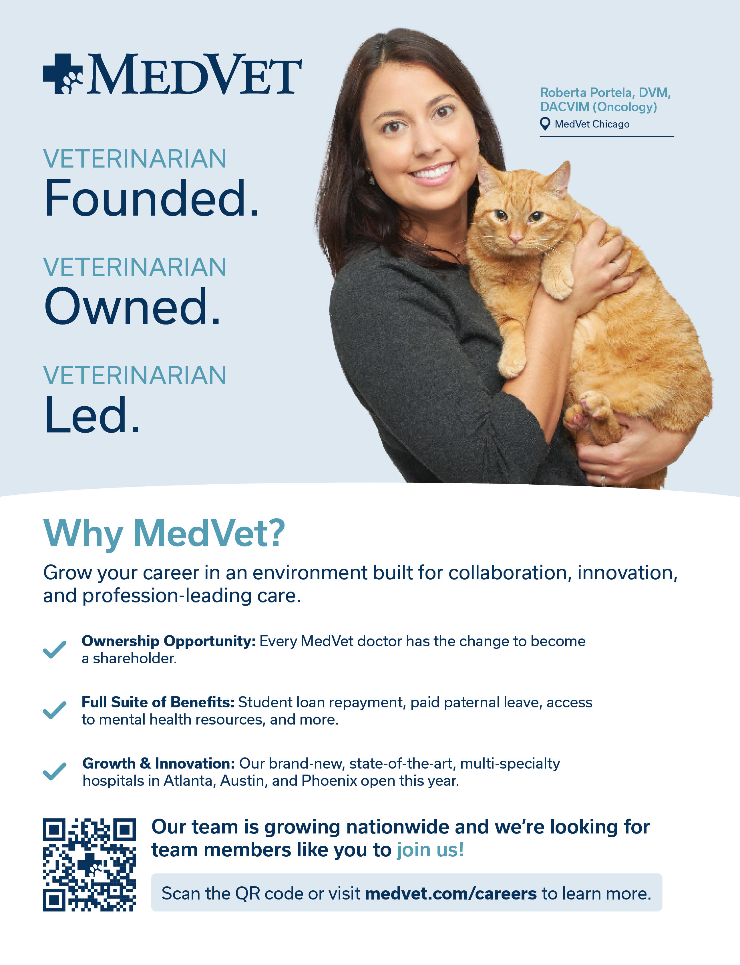 MedVet needed a stronger recruitment presence that could operate at scale across 40+ hospital locations nationwide. The challenge was building a visual system flexible enough to work across every touchpoint, from print to digital to video, while maintaining brand consistency and speaking to veterinary professionals at different stages of their career journey.