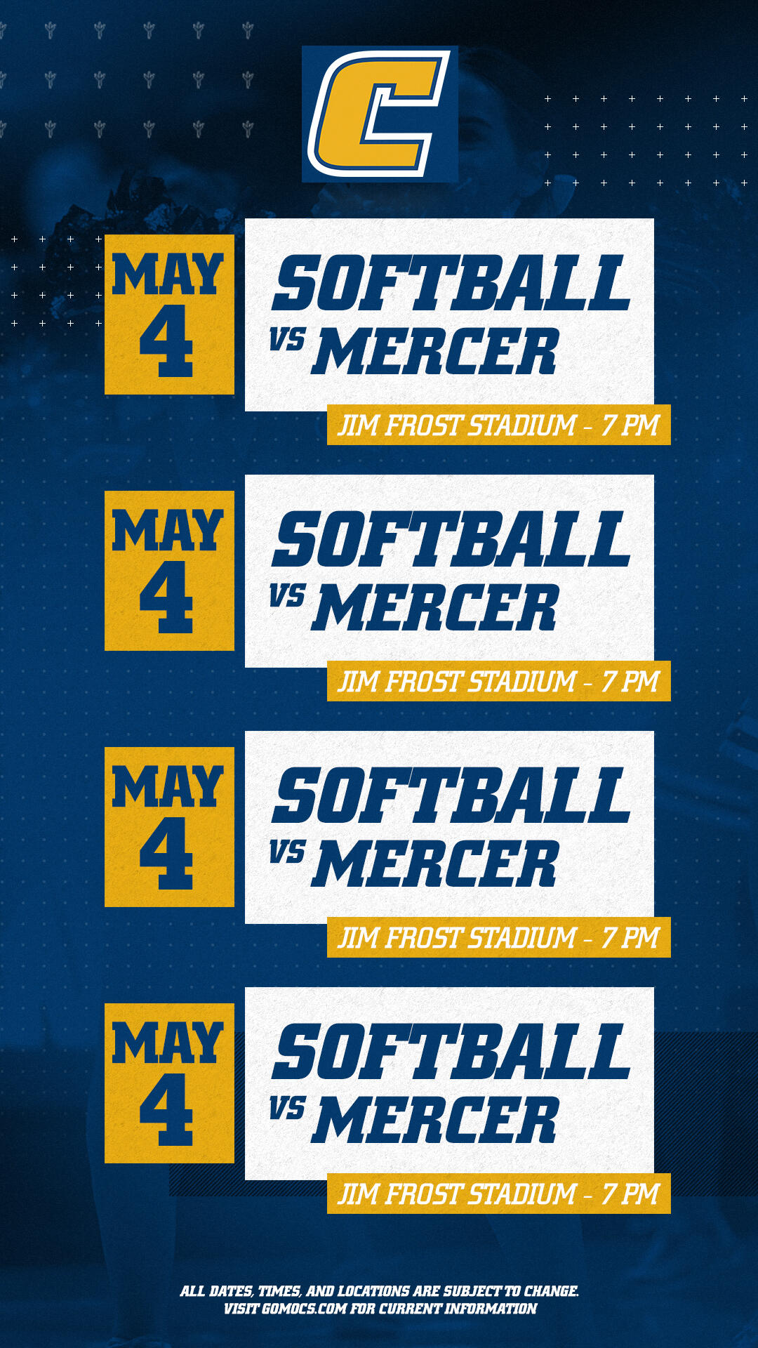 Designed a scalable social media brand system for UT-Chattanooga Athletics that allowed non-designers across the sports information department to create on-brand content independently. The challenge was building templates simple enough for staff with basic Photoshop skills to execute while maintaining a professional, consistent visual standard across all athletic programs.The system included customizable templates for social graphics, promotional posters, game day content, and event announcements. Each template was structured to prevent common design errors while giving users enough flexibility to adapt content for different sports, announcements, and seasonal campaigns.